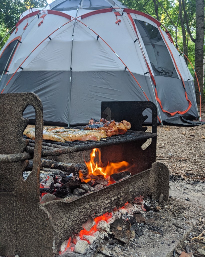 So, Falls Lake, NC has more than 300 campsites spread out throughout four of the access areas that offer sites such as RV hookups to primitive tent camping. We ended up reserving a campsite from Holly Point campground loop 2 (site 40) and the site was perfectly situated that allowed us to have minimal interactions and enjoy a quiet and serene weekend next to the lake. The site did lead to a path to the lake; which was quite useful as we managed to dock the boat at the access point and was able to have easy access to our campsite! After a long day enjoying the sun on the lake and the cool breeze, we got the fire ring, with a grill attachment, going and threw on some wings and pork ribs for a hearty dinner next to the fire. The night didn’t have any bothering mosquitos and it wasn’t too hot. What was truly amazing was that our campsite area managed to ‘light up’ with fire flies throughout and provided what was a magical and fantasy-like experience.