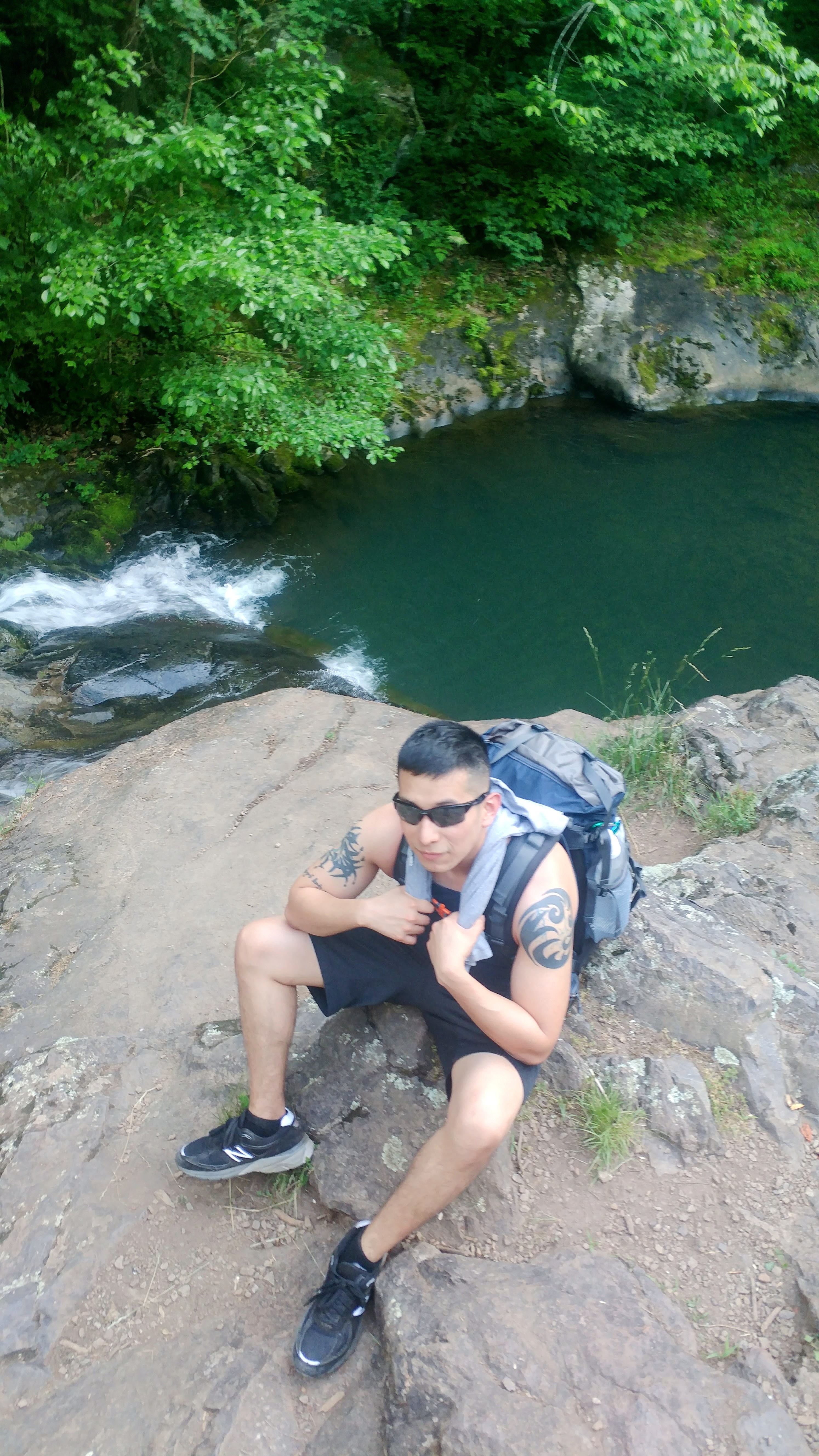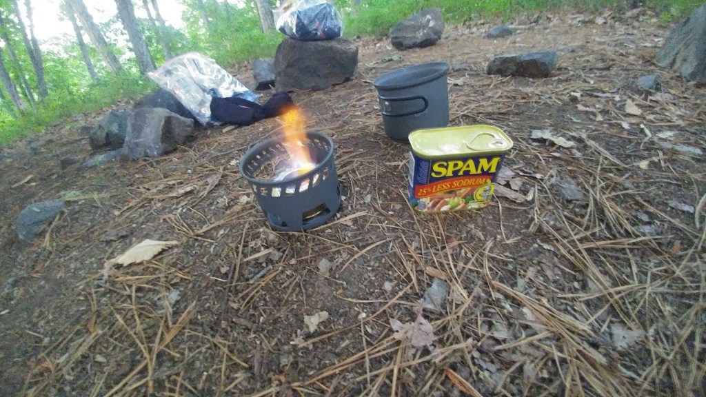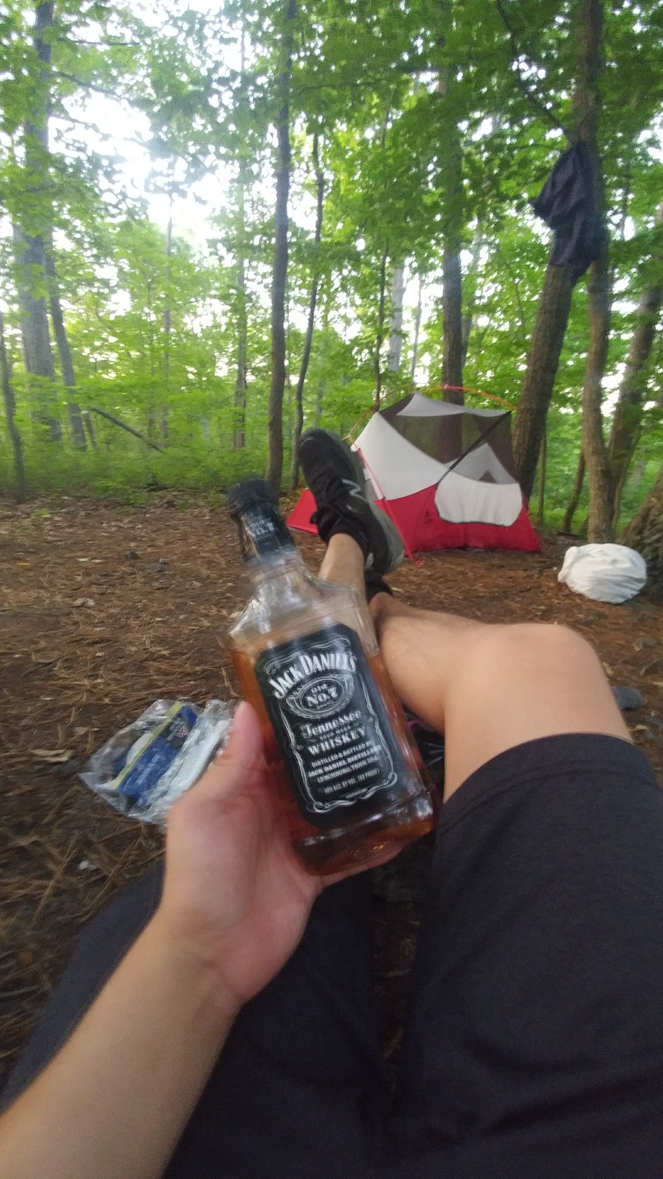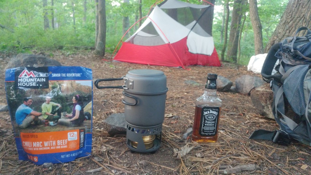 Sadly, we did not get enough time to take a dip in the water holes we found as dusk was settling in, and we had to find a spot to start setting camp (and get some down-time while there was still light out). After a very strenuous incline that seemed to never end, we finally found a nice spot to set our campsite and made ourselves a delicious freeze-dried dinner. I had the chili mac and beef, and he had a spaghetti and meatball! Trust me when I say that after a rough 6.2-mile hike, those frozen-dried pre-made dinner packs were terrific! The Jack Daniels helped alleviate some of the pain from the hike, of course. 😊 The night was relatively quiet as there was not a single human within our vicinity. Although, sometime around 1am, there seemed to be (what sounded like) a big critter walking through the ravines below from our campsite heading towards our direction. The noise got very close to us to the point that it worried us enough to stick our heads out of the tent and yell some loud noises to scare off the critter – it worked. We were later left pondering what it could have been. He says it was possibly a black bear or a white-tailed deer. Perhaps, it was the ever-elusive bigfoot, eh? We’ll never know!