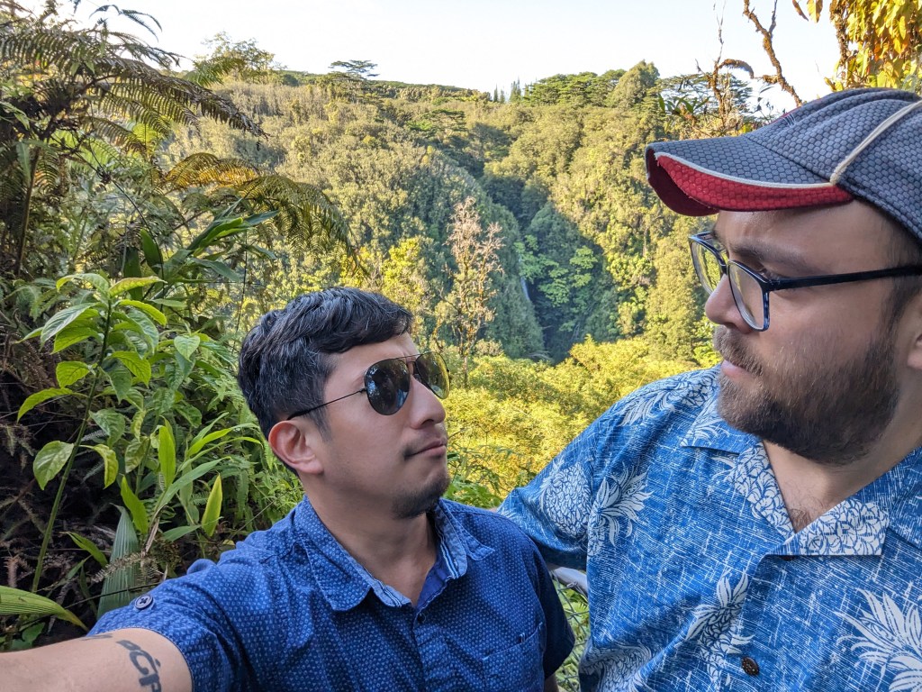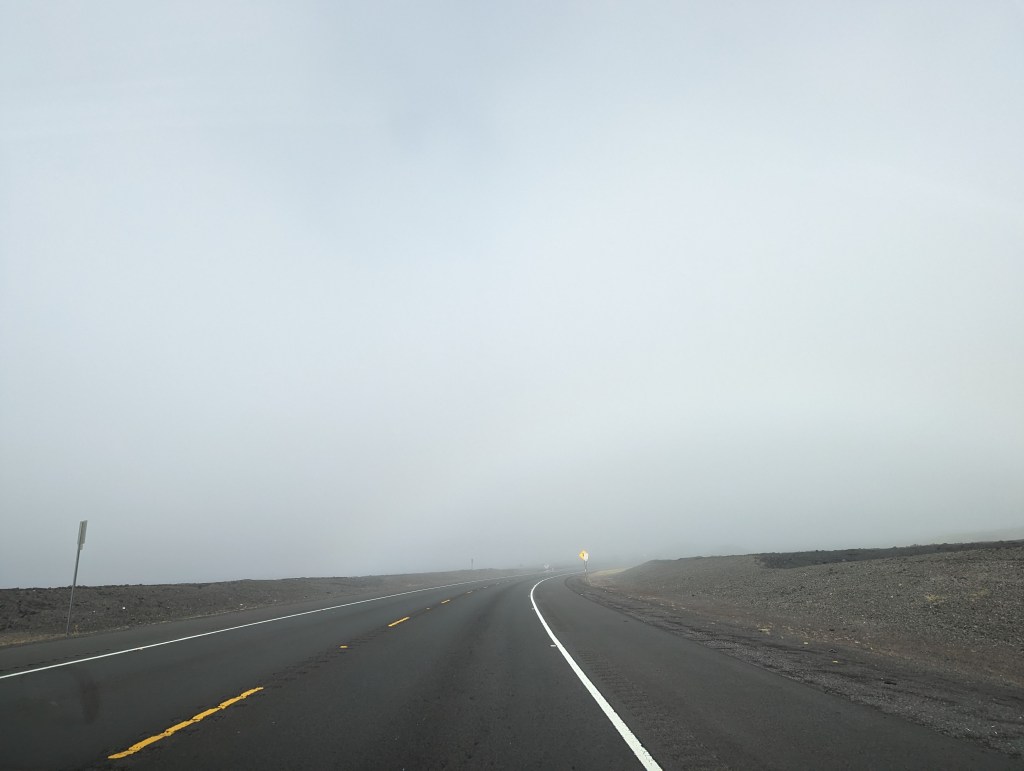 Soon after, we headed to the airport again to fly out to the Island of Hawai’i. Upon landing in Hilo, the first on our list to visit was the lava flow from the active volcano Kilauea. Unfortunately, we left empty-handed with little to see other than endless views of black volcanic rocks, misty and cold weather, and some friendly national guard soldiers patrolling the one-way route set up for tourists to drive through. We took this route.