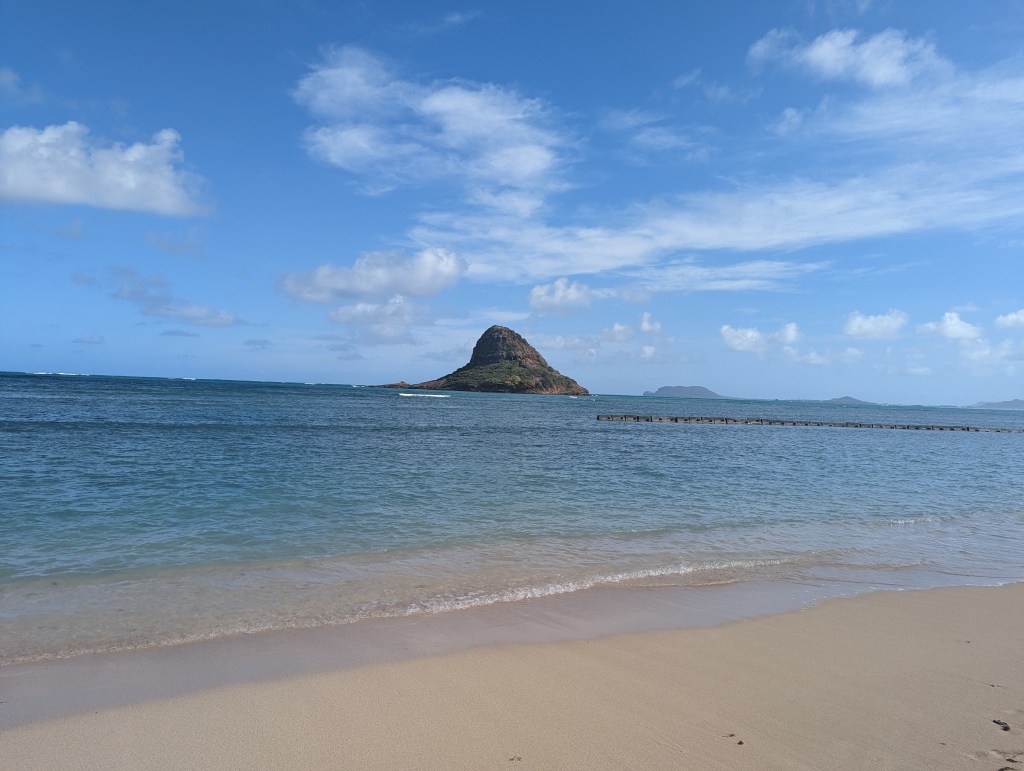 With only two hours until we had to get to the airport, we stopped by Kualoa Regional Park to take our last swim on a beach in Hawaii. Being a Tuesday afternoon, we had the whole beach to ourselves. View of Mokoli’I, also known as Chinaman’s Hat, was even more spectacular than the first time I went here when I was stationed at Schofield Barracks back in my twenties.